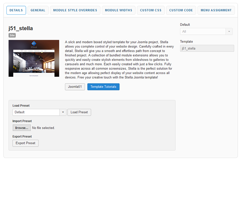 Your template parameters can be access directly from your Template Manager giving you access to a host of features including a selection of template styles, some colour choosers to help customise your template headers and links, a number of layout options and easy to use logo settings.